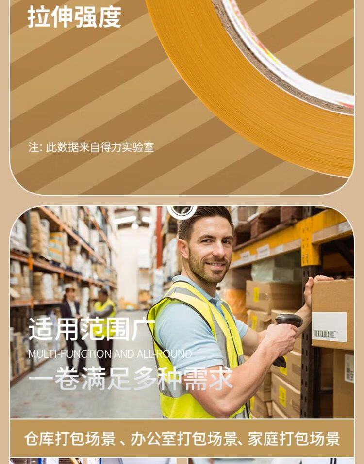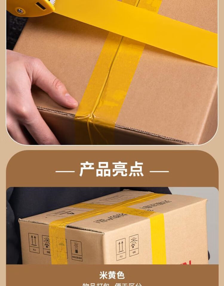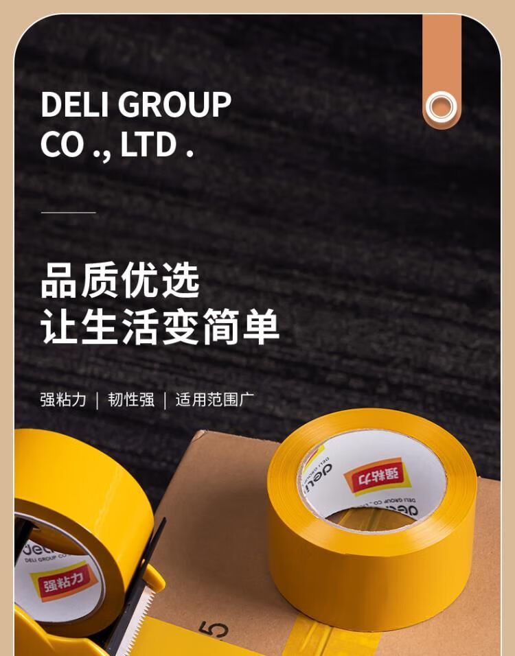 得力(deli)30359米黃封箱膠帶60mm*100y*50um(米黃色)(6卷/筒) 2筒 自營