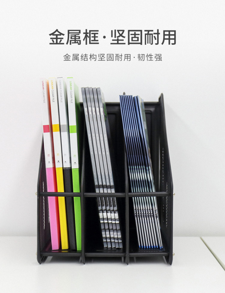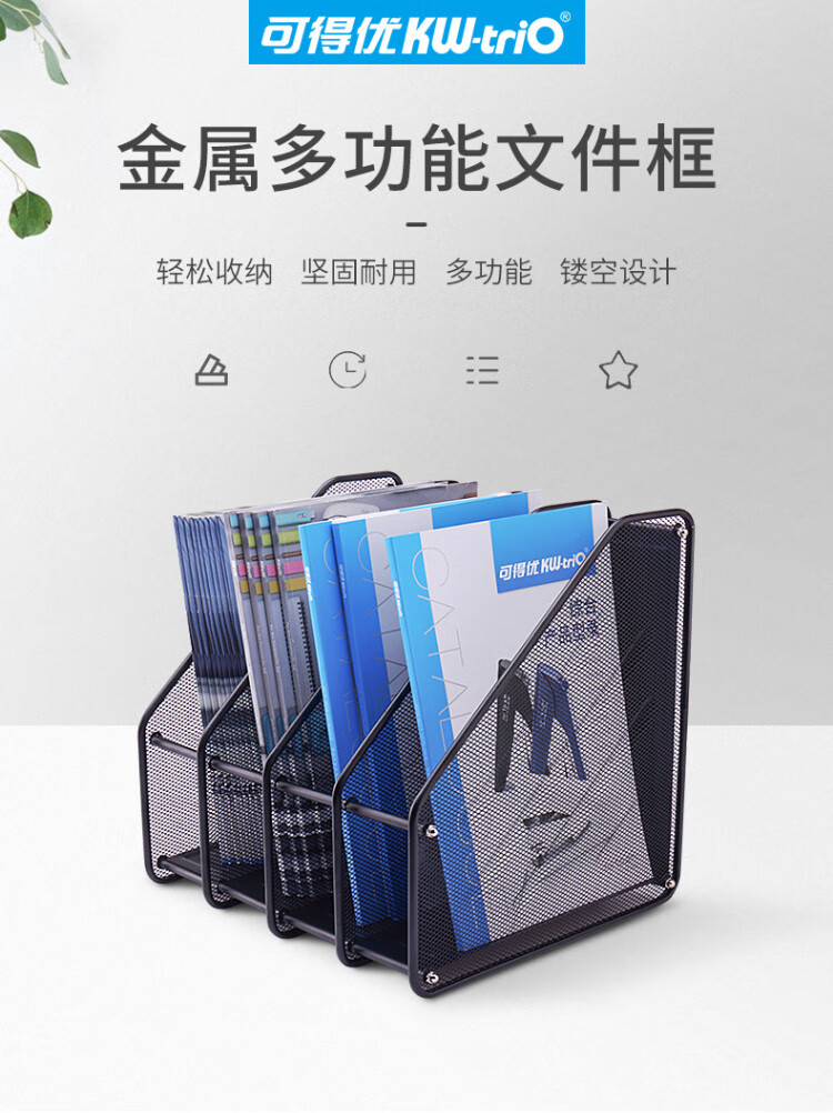 ¥55.70可得優(yōu)(KW-triO)ZH-04桌面收納 金屬鐵網(wǎng)四聯(lián)文件座文件欄文件筐文件框文件架資料架子
