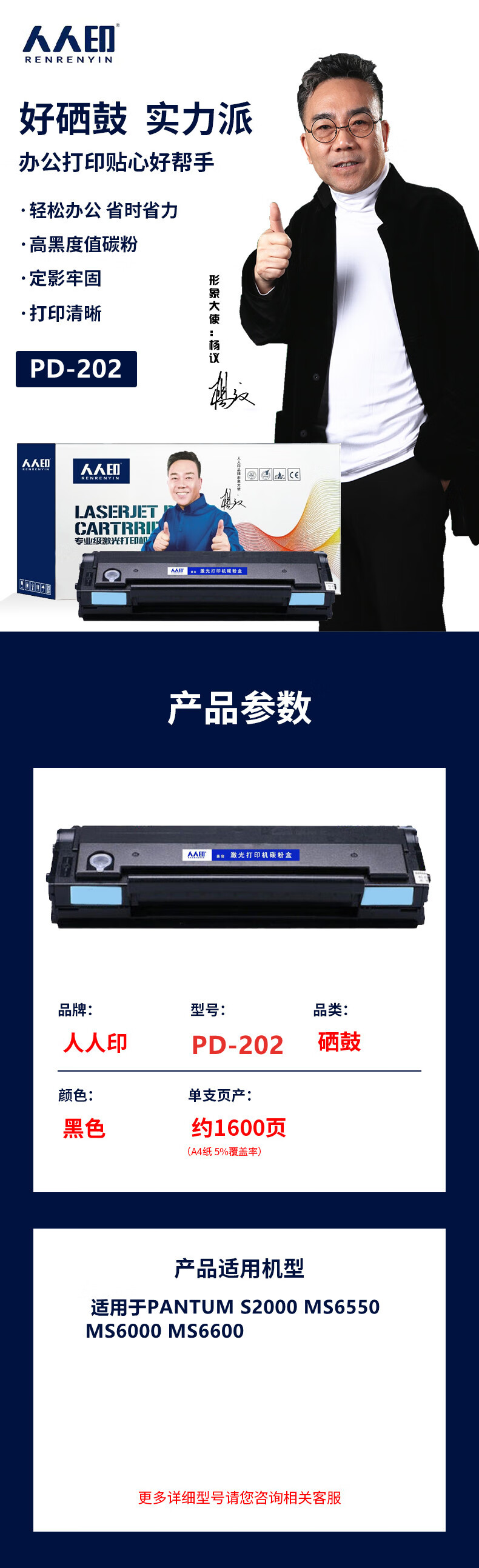 人人印 適用奔圖PD-202硒鼓 PANTUM S2000 MS6550 MS6000 MS6600打印機(jī)硒鼓 墨盒 PD-202 自營(yíng)