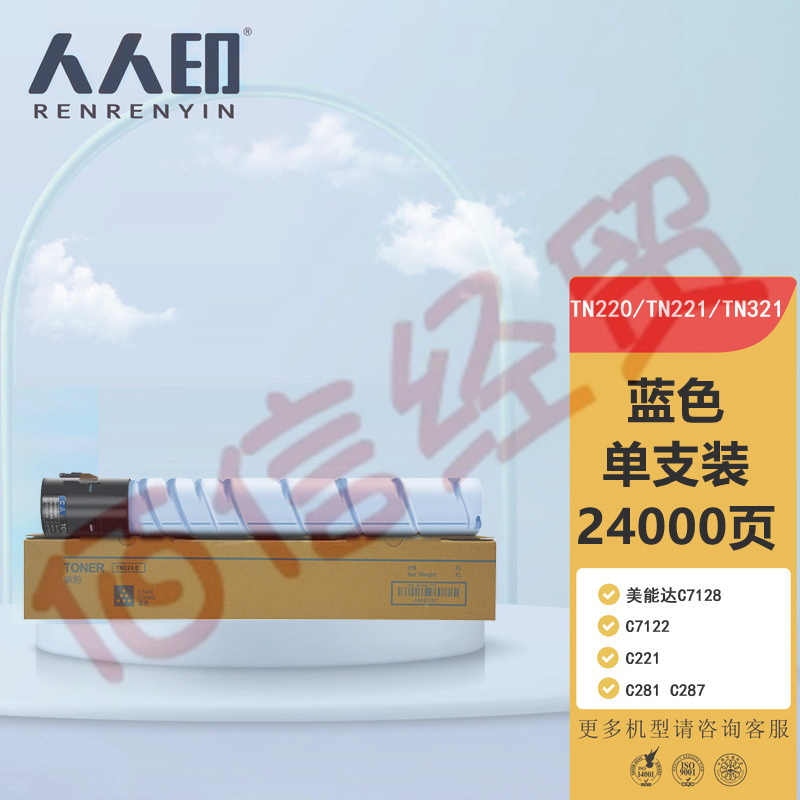 人人印TN220粉盒藍(lán)色 適用柯尼卡美能達(dá)C7128 C7122 C221 C281 C287墨盒 震旦ADT223 ADC223 S 283 碳粉 自營