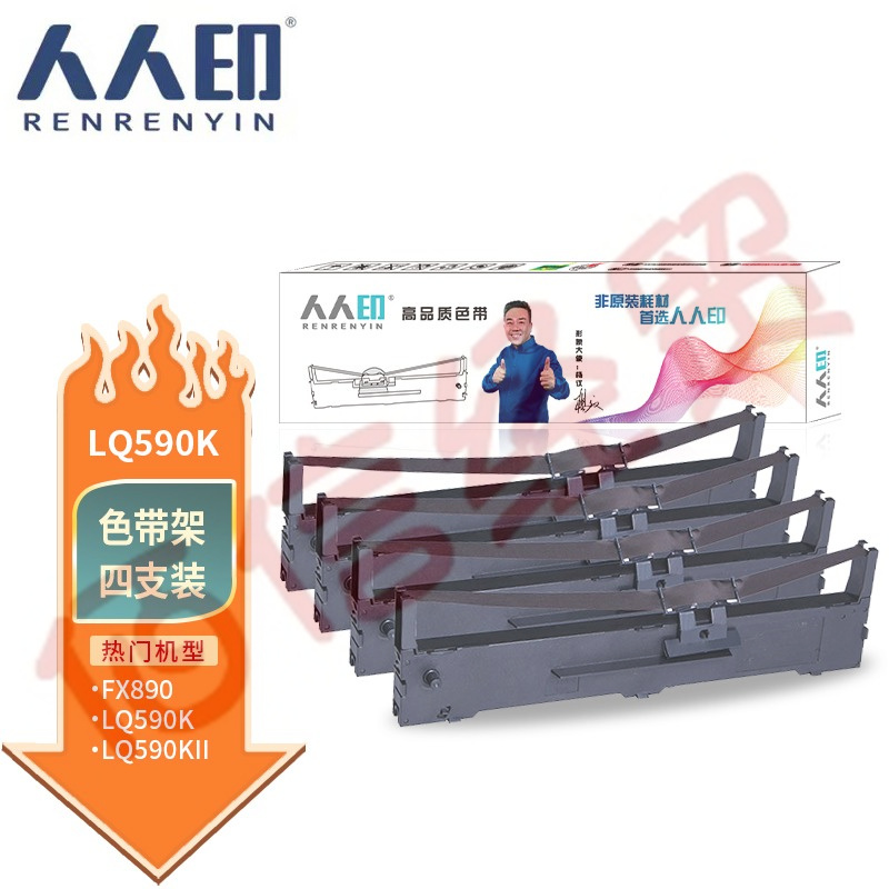 人人印LQ590K色帶4支裝 適用愛普生EPSON FX890 LQ590K LQ590KII LQ595K S015337 C13S015590打印機色帶架 自營