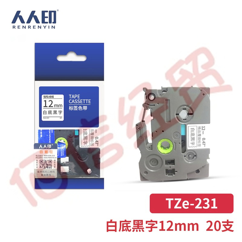 人人印標簽帶 12mm白底黑字TZe-231 20支裝標簽色帶適用兄弟標簽打印機PT-D210/200/600/900/18Rz標簽紙 自營
