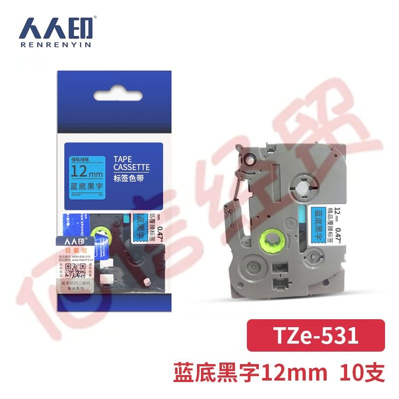 人人印標(biāo)簽帶 12mm藍(lán)底黑字TZe-531 10支裝標(biāo)簽色帶適用兄弟標(biāo)簽機(jī)標(biāo)簽打印機(jī)brother打印標(biāo)簽紙標(biāo)簽打印紙 自營(yíng)