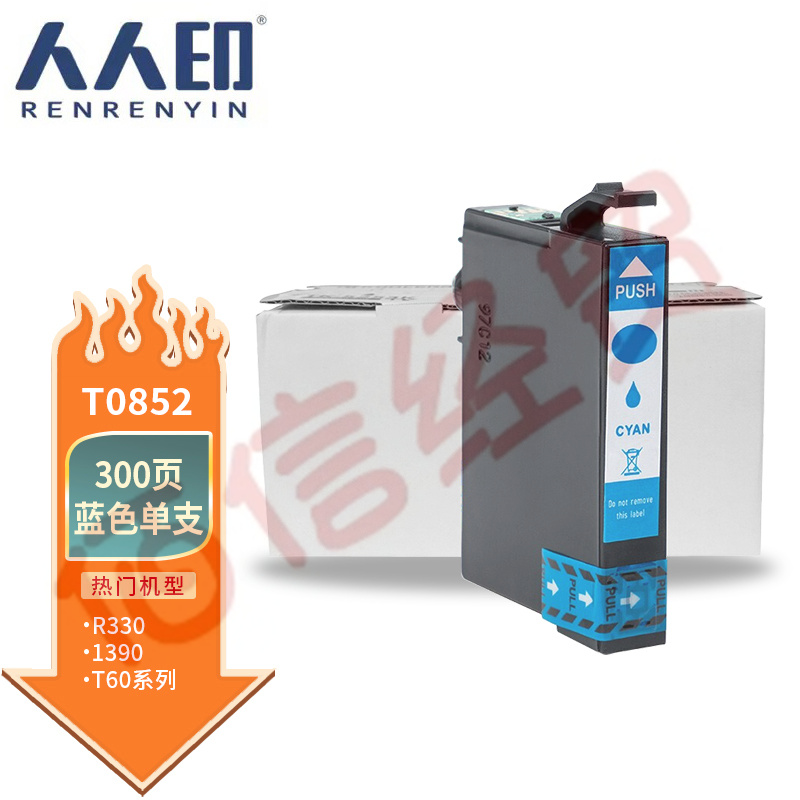人人印 T0852墨盒藍(lán)色(適用愛普生R330墨盒T60 EPSON 1390打印機(jī)墨盒 85N T0851N T0856N) 自營