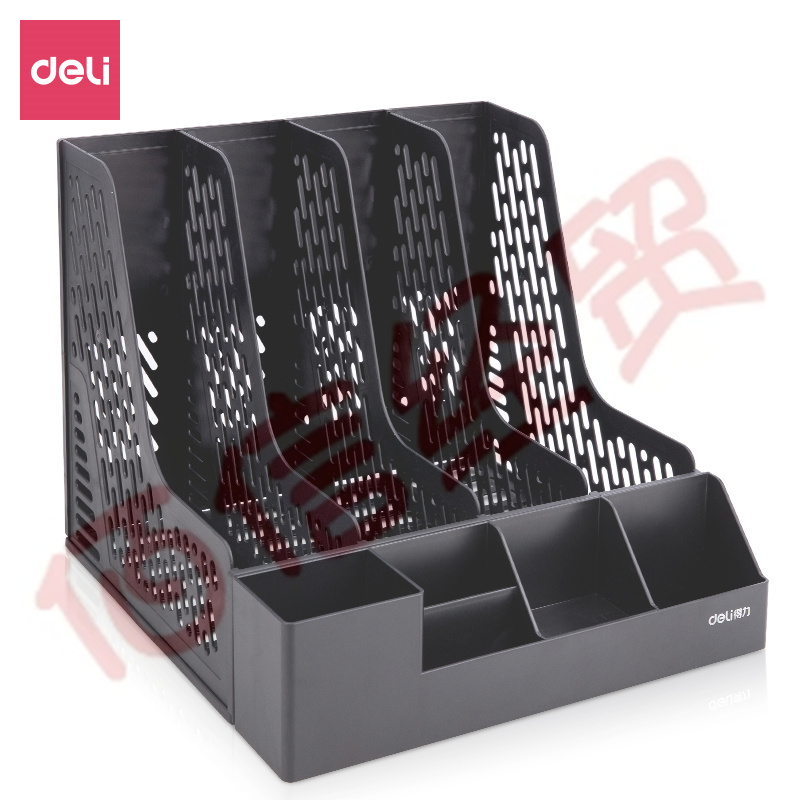 得力(deli)4聯(lián)帶筆筒收納桌面文件框 辦公室桌面多層資料架子 多功能鏤空文件架 黑色78981 自營(yíng)