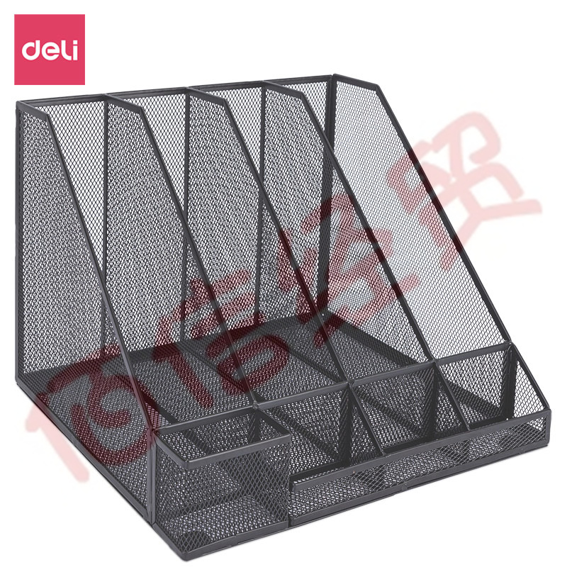 得力(deli)四聯(lián)帶筆筒收納一體式文件框 辦公室桌面多層資料架子 網(wǎng)狀鏤空文件架 黑色78988 自營