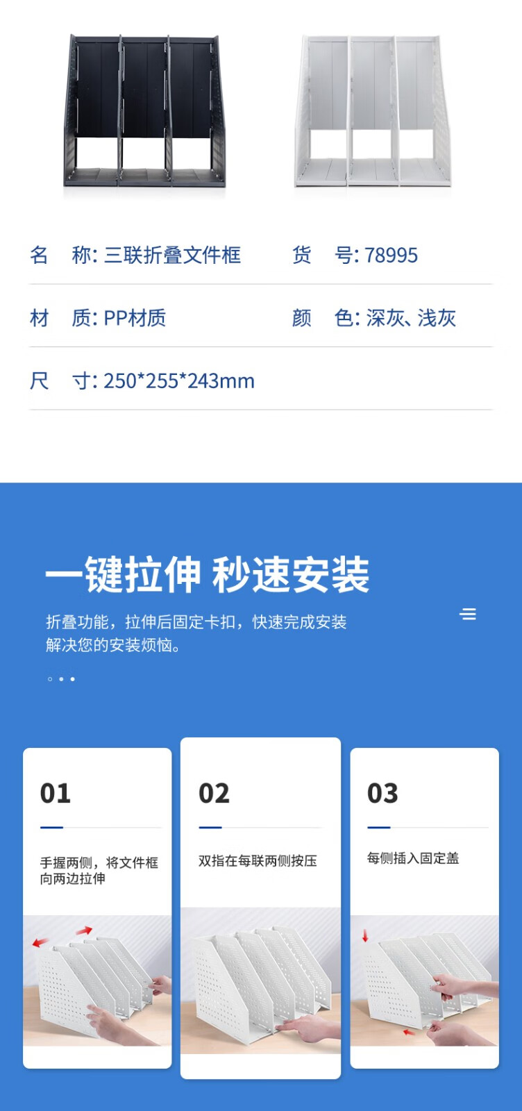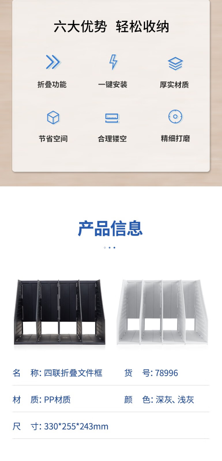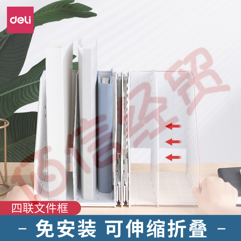 得力(deli)折疊文件框 書立可折疊文件框桌面文具收納學(xué)生大號書架折疊書立架桌面文件盒辦公用品 四聯(lián) 淺灰 78996 自營