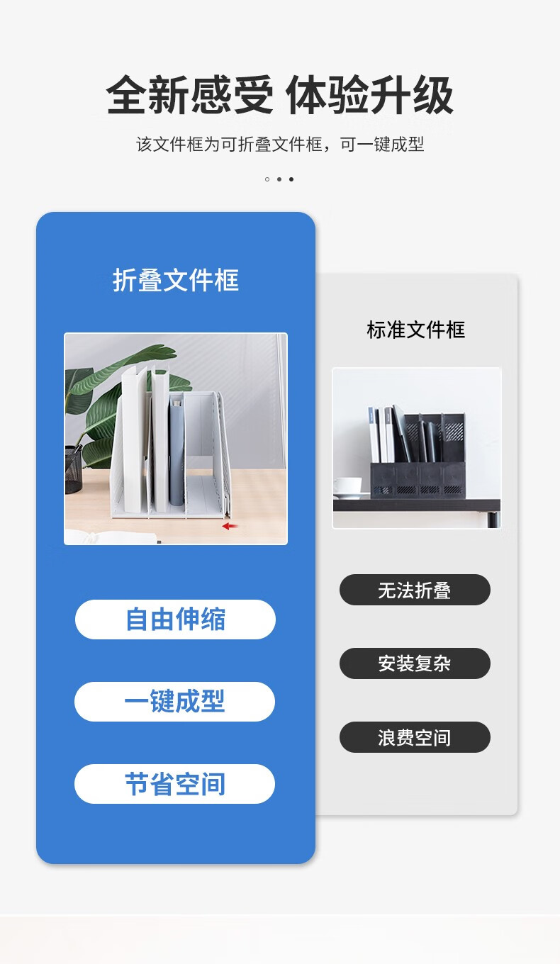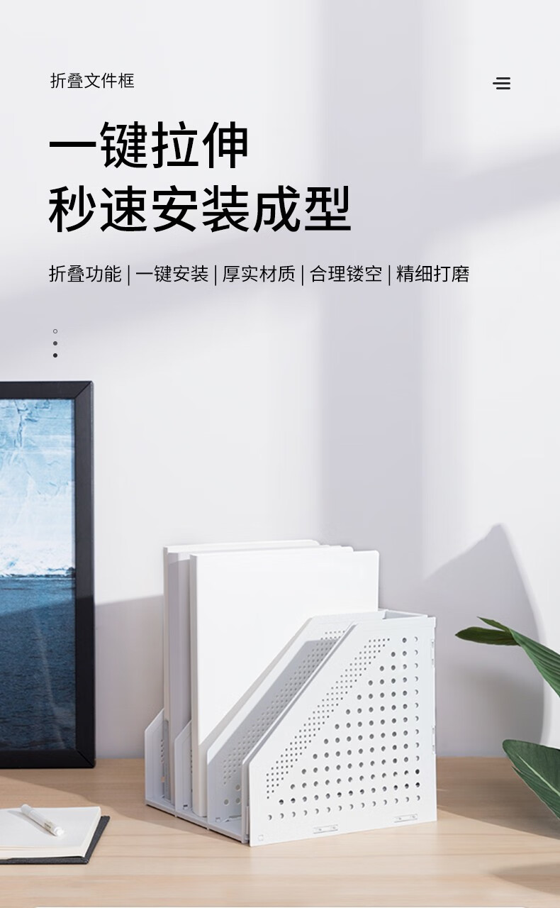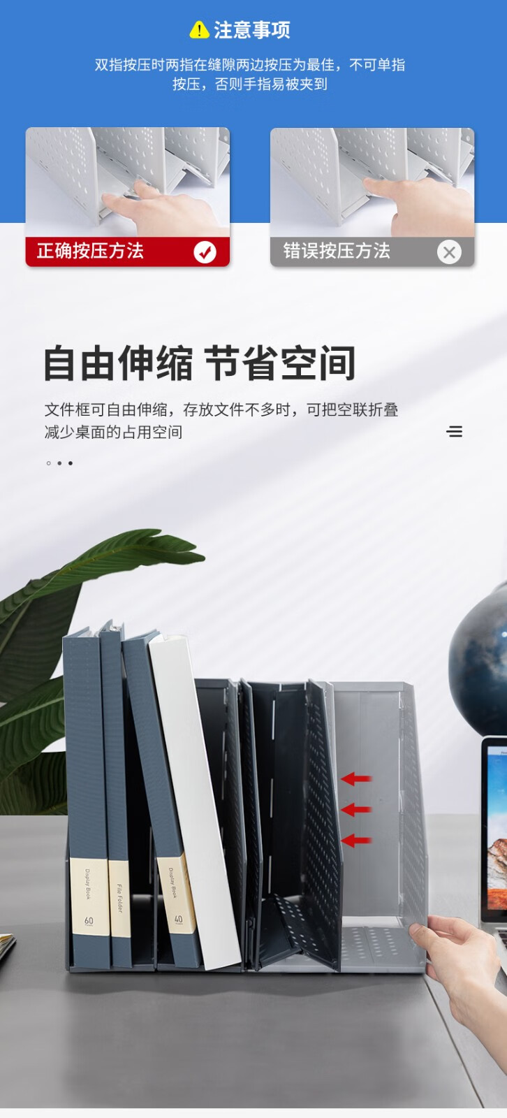 得力(deli)折疊文件框 書立可折疊文件框桌面文具收納學(xué)生大號書架折疊書立架桌面文件盒辦公用品 四聯(lián) 淺灰 78996 自營