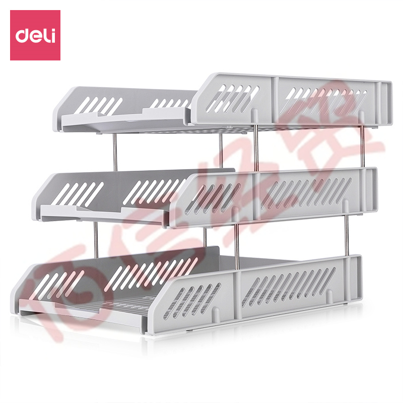 得力(deli)三層鏤空收納文件座 自由拆卸組裝三層文件盤/文件框 灰色9209 自營