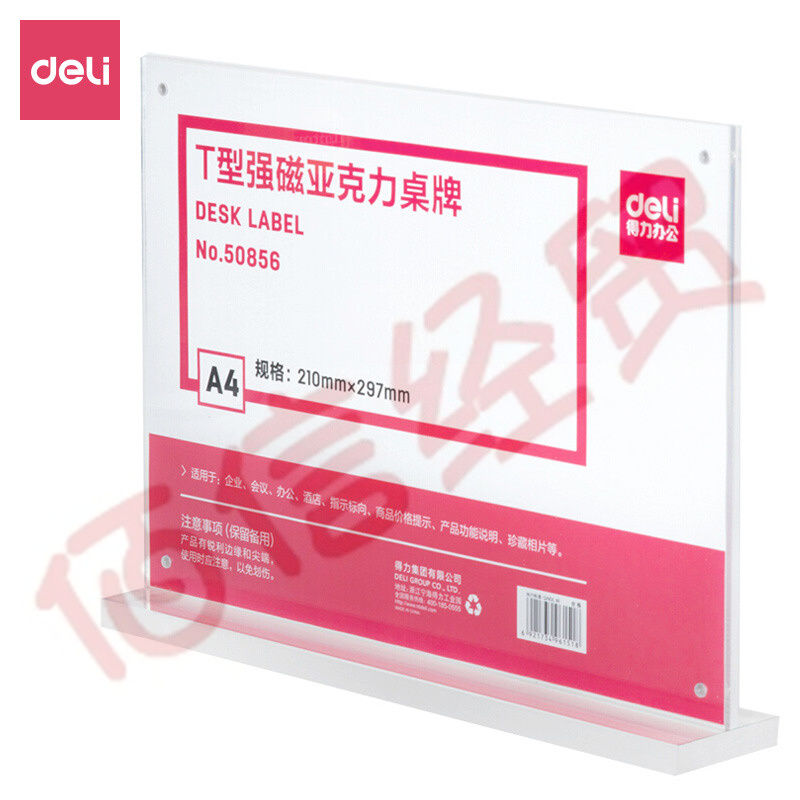 得力(deli)50856 T型A4橫式透明強磁吸附亞克力桌牌/展示牌/臺卡/酒水牌 自營