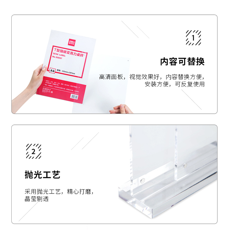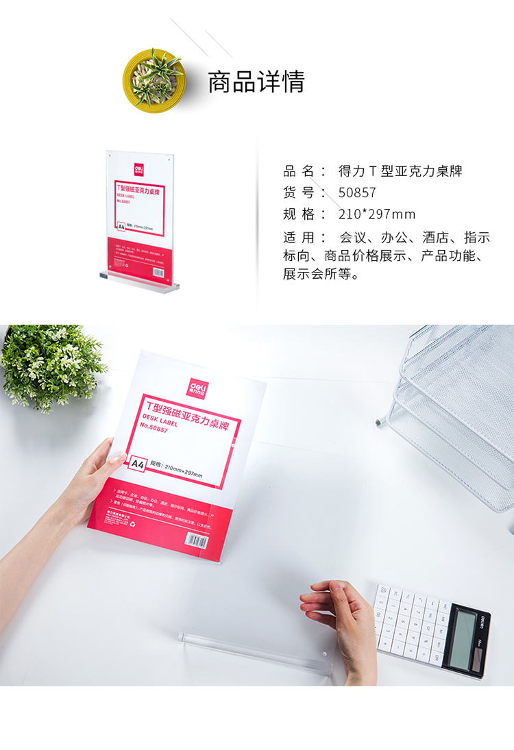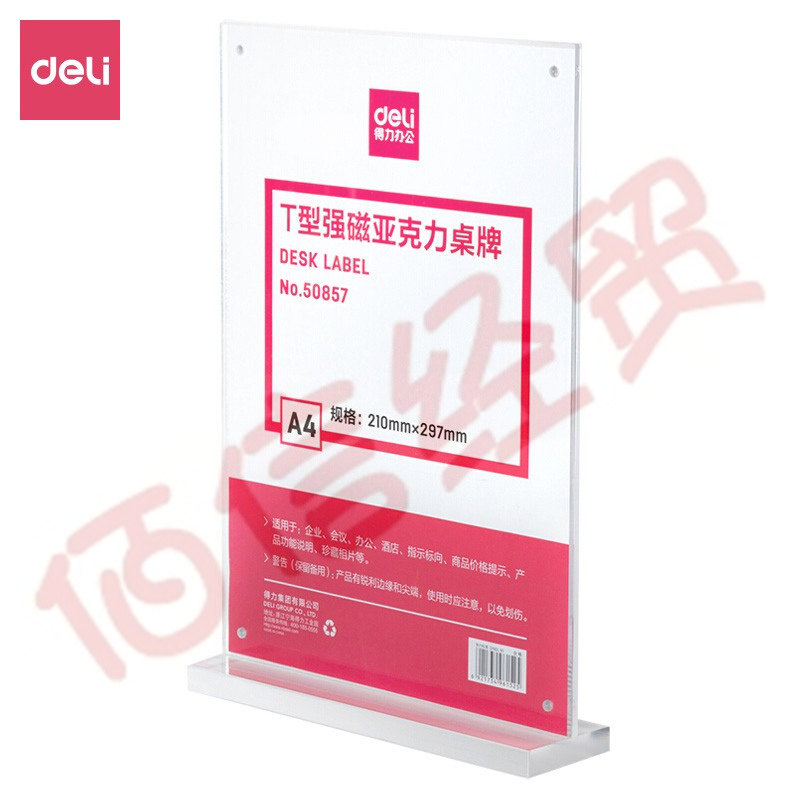 得力(deli)50857 T型A4豎式透明強磁吸附亞克力桌牌/展示牌/臺卡/酒水牌 自營