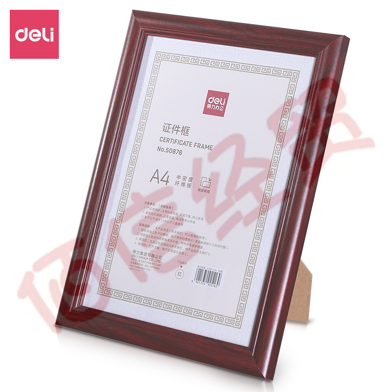 得力(deli)50876 A4營業(yè)執(zhí)照相框證件框 工商稅務(wù)登記證框 橫豎證件相框畫框證書框 紅色5個裝 自營