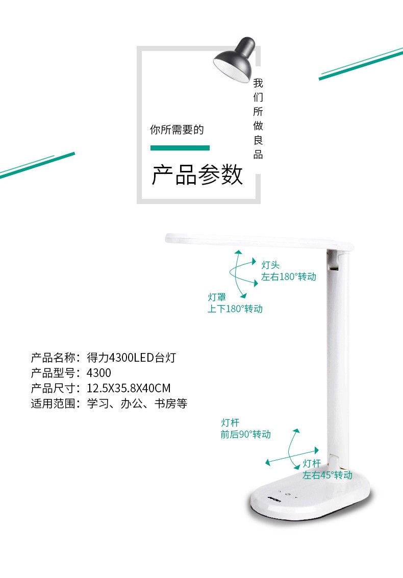 得力 deli 得力4300LED觸控臺燈(白色) 適配器 DC12V 1A 100014104 自營