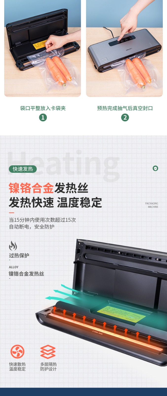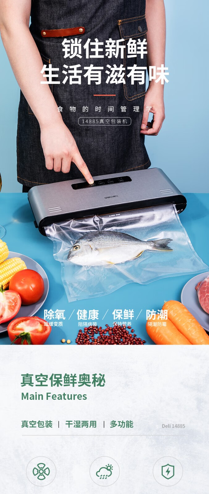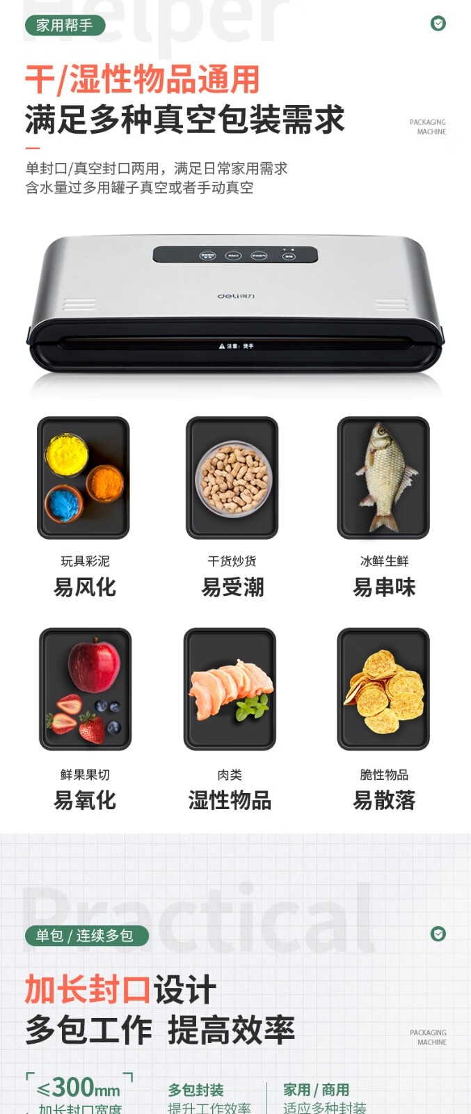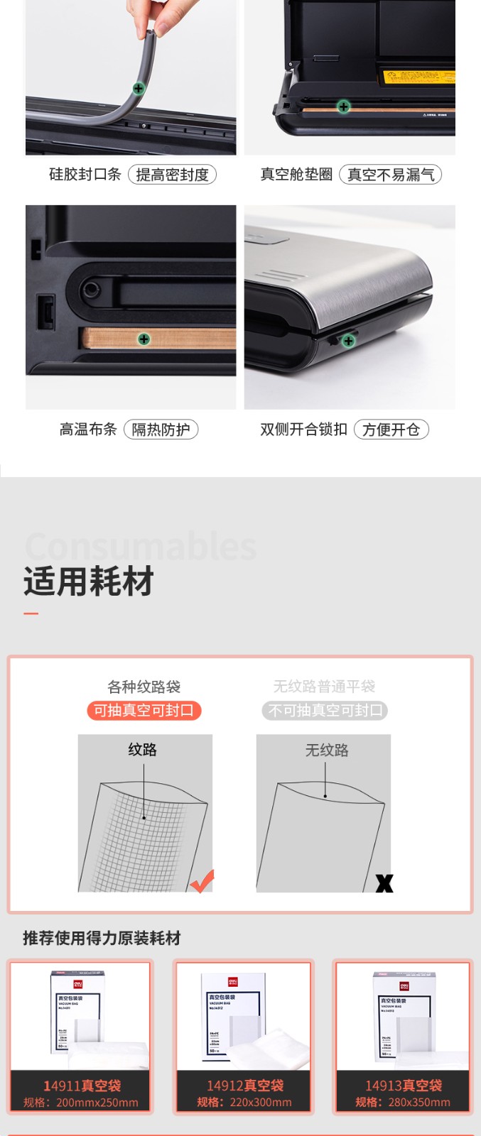 ¥198.30得力(deli) 商用真空機(jī)包裝機(jī) 家用食品封朔機(jī) 小型干濕兩用大吸力真空封口機(jī)抽空封裝機(jī) 14886S【官方標(biāo)配】