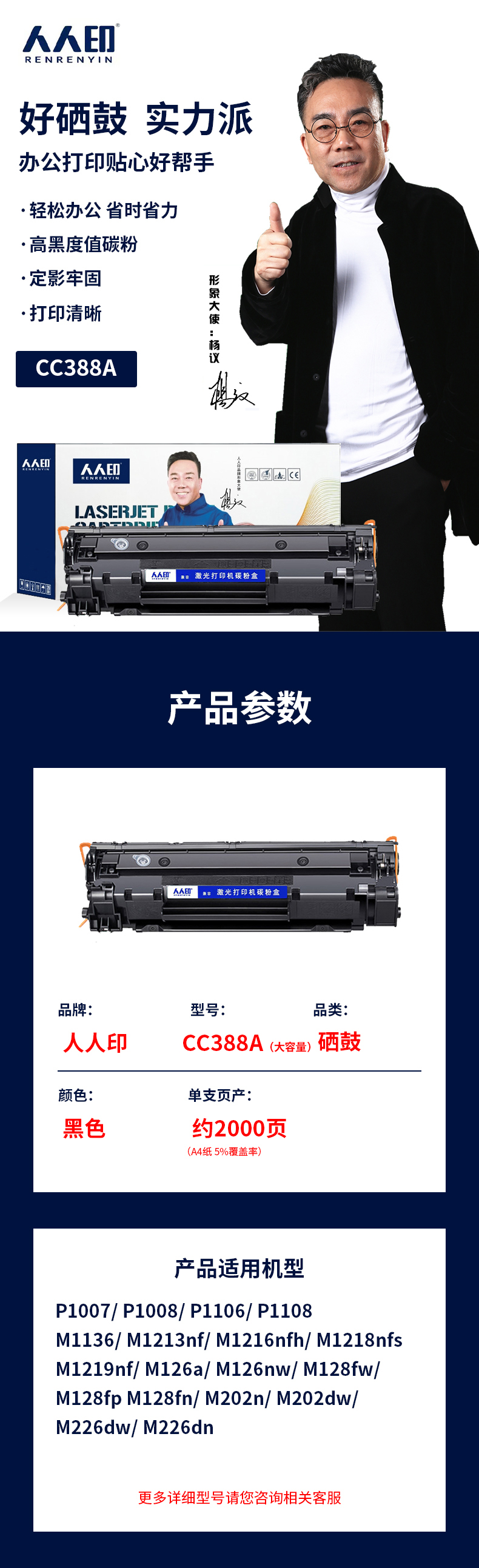 人人印CC388A 88A大容量硒鼓適用惠普388a墨盒P1106 P1108 M126a M1136 M1213 1216打印機碳粉盒(帶服務耗材) 自營