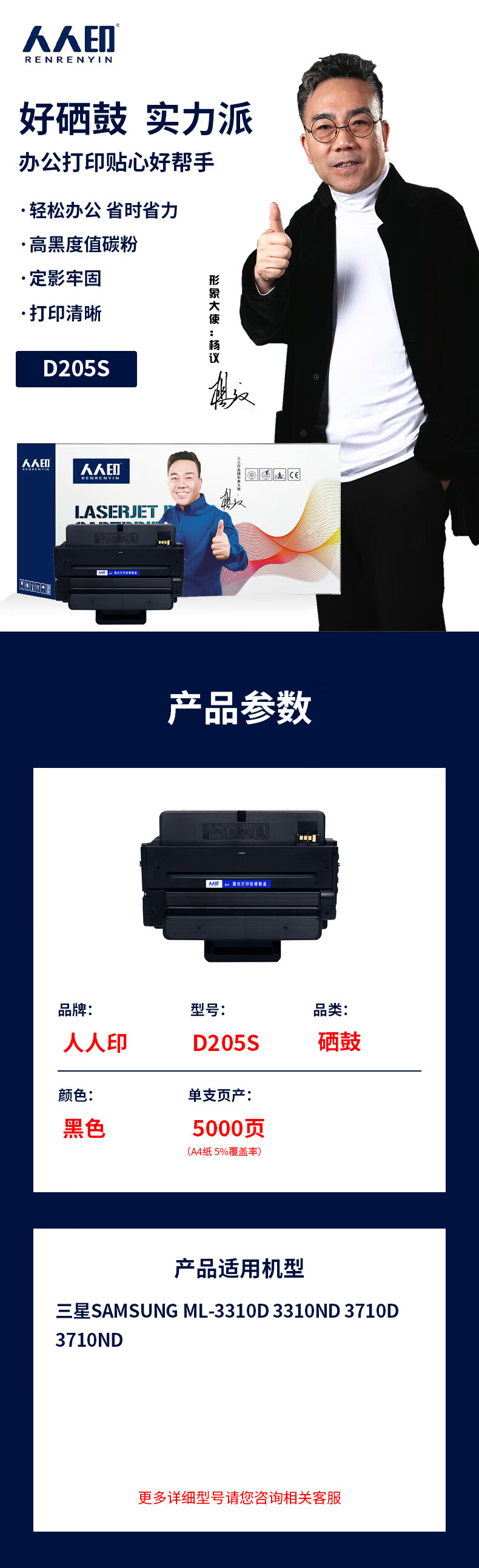 人人印 D205S 黑色硒鼓 適用三星SAMSUNG ML-3310D 3310ND 3710D 3710ND 自營(yíng)