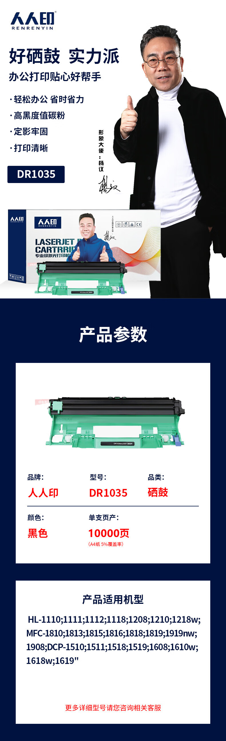 人人印DR1035鼓組件適用聯(lián)想m7206硒鼓m7206w m7256whf粉盒 LJ2205墨粉盒1618w 1608 1208 DR1035 自營(yíng)