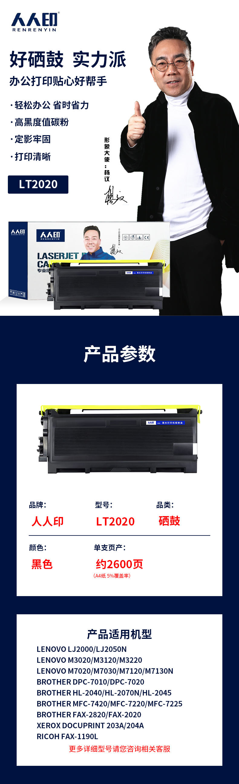 人人印 LT2020粉盒 適用聯想LJ2000/LJ2050N/M7020/M7030/M7120/M7130N/M3020/M3120/M3220 硒鼓 自營