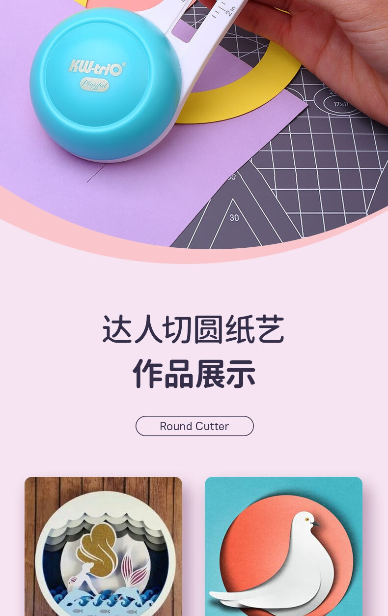 可得優(yōu)(KW-triO) 切圓器辦公裁圓器學生畫圖圓形刀手賬切圓刀劃圓10-32mm弧形刀 切圓器+A2切割墊 自營