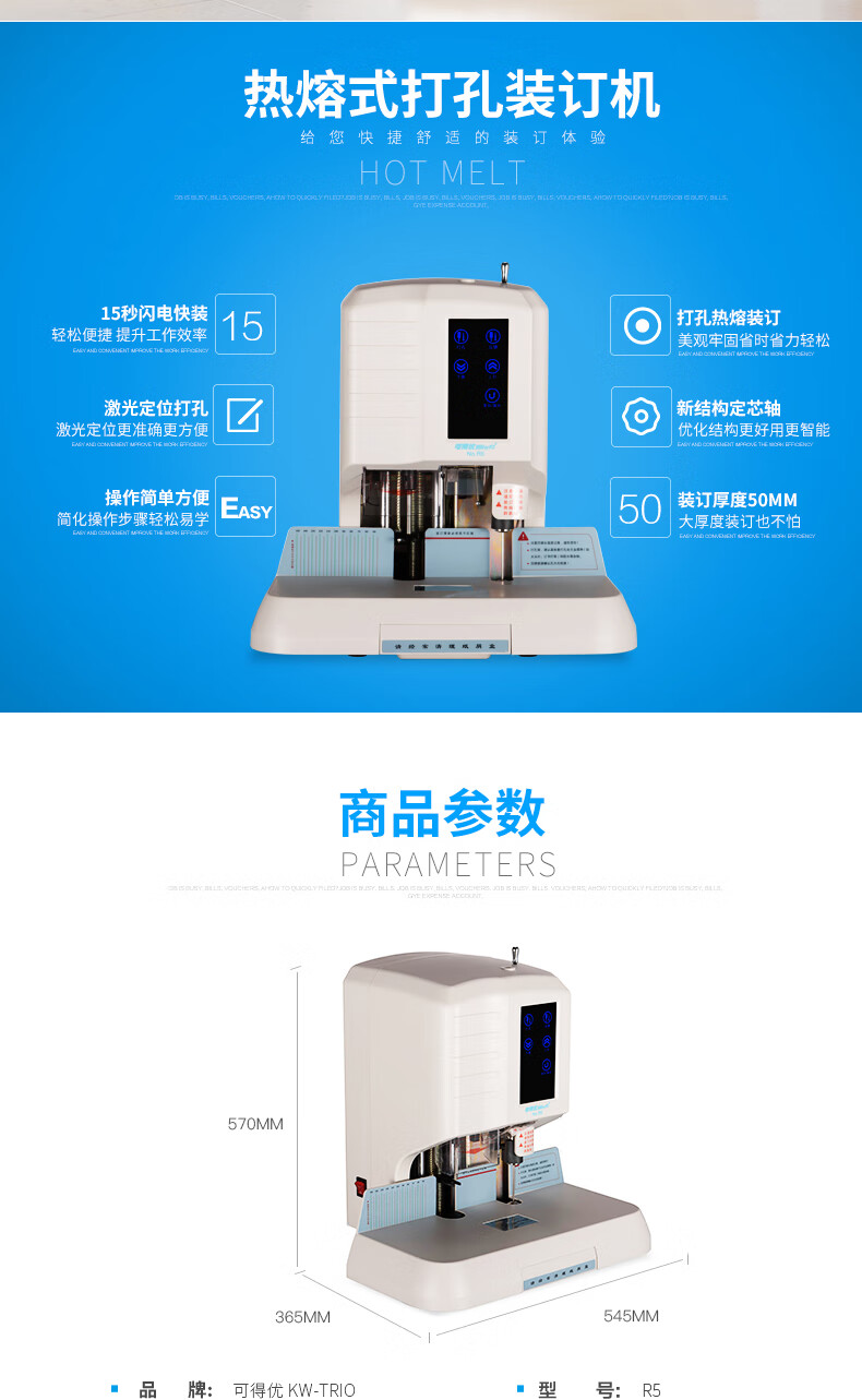 可得優(yōu)(KW-triO)R5電動(dòng)智能財(cái)務(wù)憑證熱熔裝訂機(jī)自動(dòng)省力鉚管打孔機(jī)500頁(yè) 500頁(yè)裝訂 R5 自營(yíng)