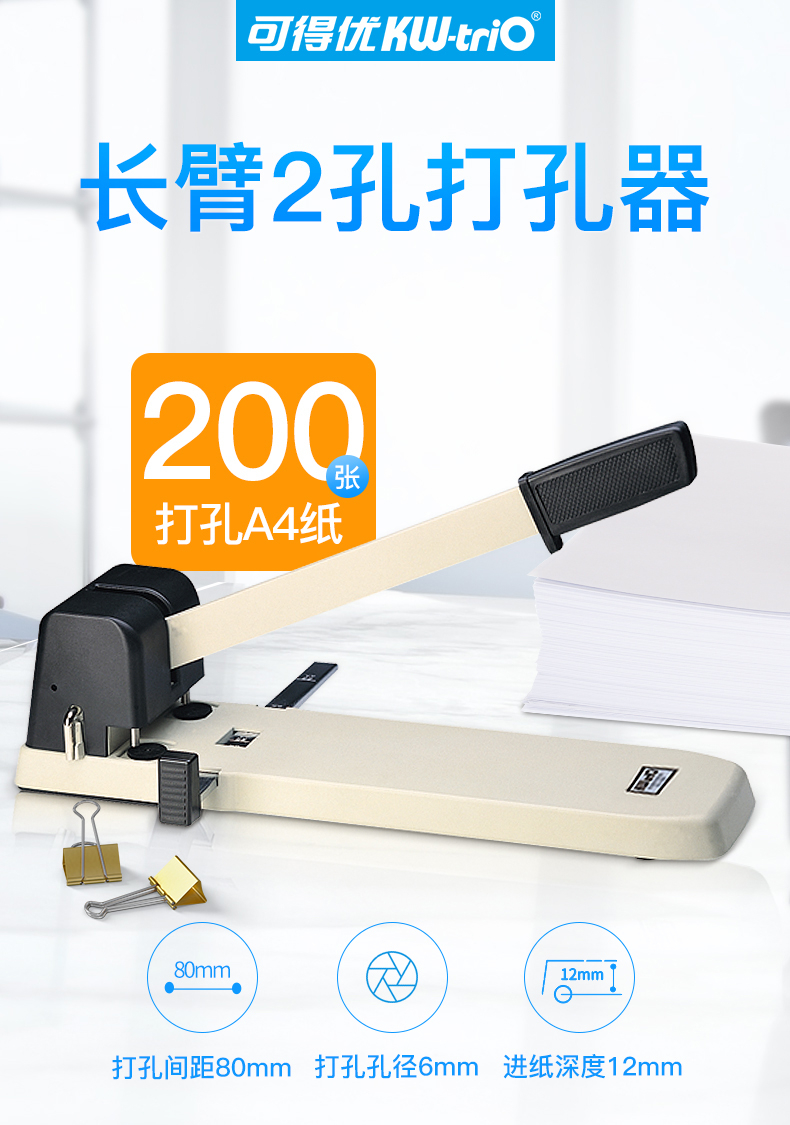 可得優(yōu)(KW-triO) 9330重型兩孔長臂打孔機雙孔文具2孔打孔器打200頁 自營