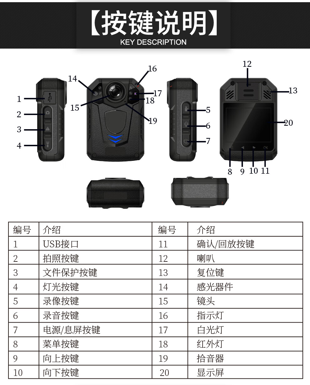¥1188.00警杰DSJ-N1執(zhí)法記錄儀4500萬像素 T-ypec接口 密拍模式 512GB存儲卡