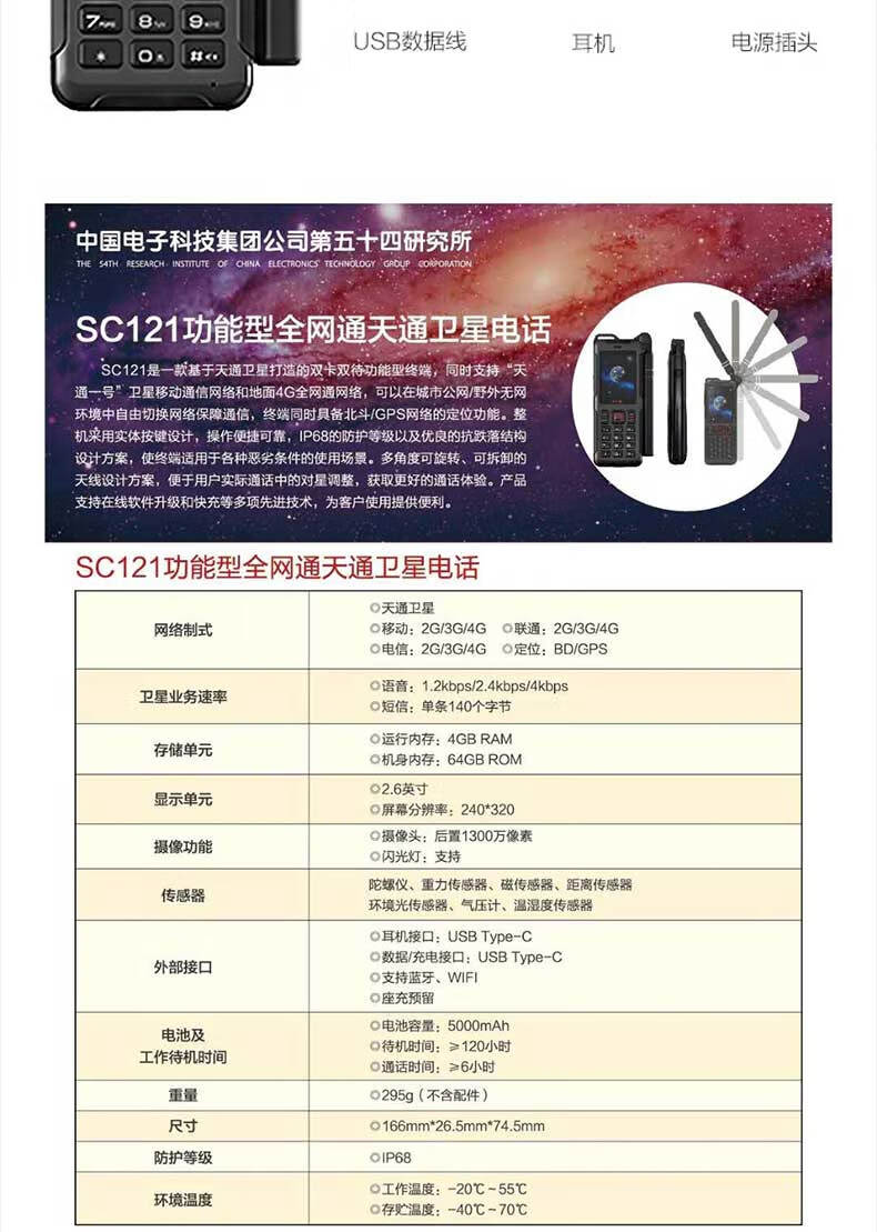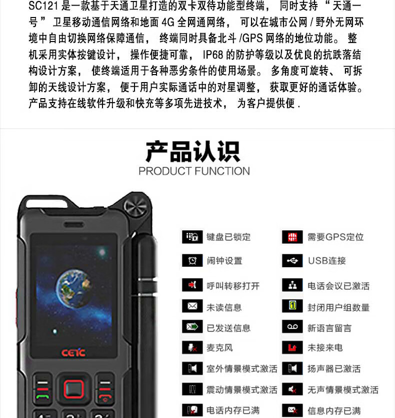 影衛(wèi)達(dá) CETC天通一號SC121衛(wèi)星電話手機(jī)北斗導(dǎo)航智能戶外手機(jī)雙卡雙待雙模GPS中國制造應(yīng)急通訊自帶室外天線