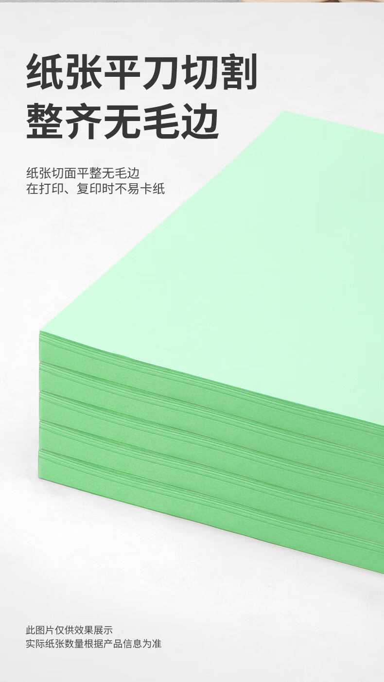 得力(deli)A4 80g 淺綠色彩紙復印紙 彩色非厚卡紙兒童手工紙剪紙打印紙 500張/包 7757-A4-500 自營