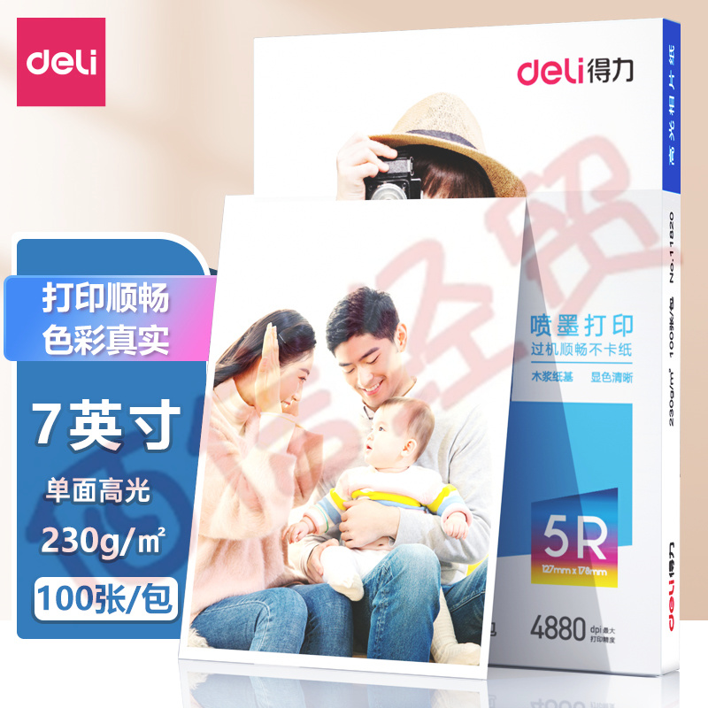 得力(deli)7英寸 230g高光面照片紙 相片打印紙 100張/包 11820 自營