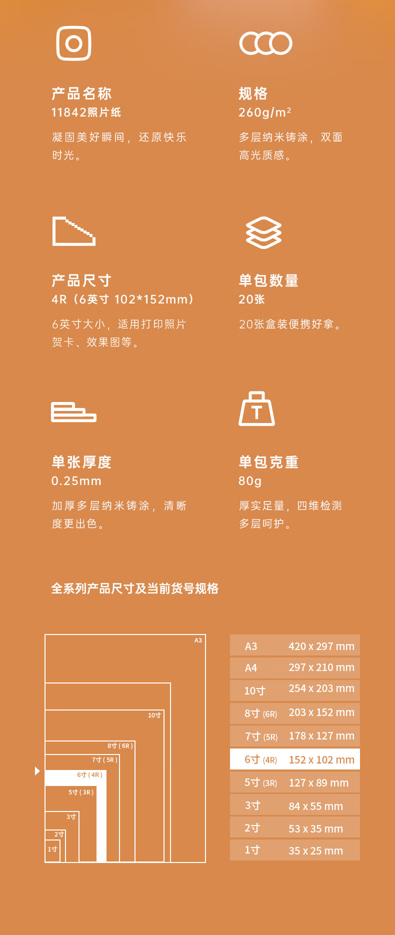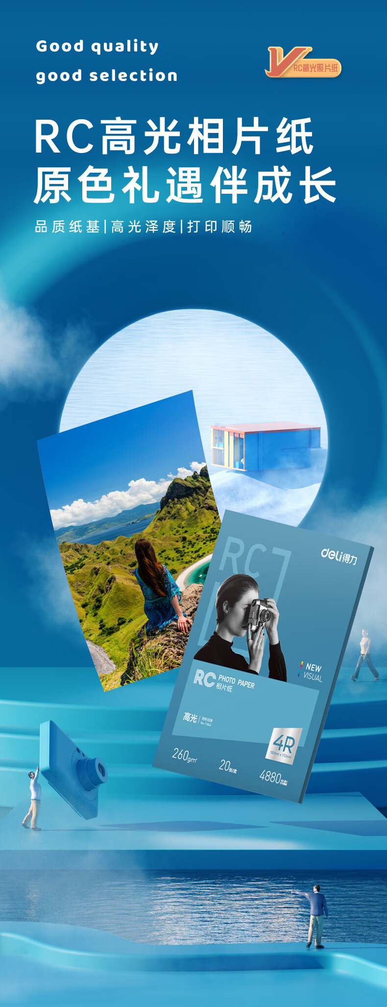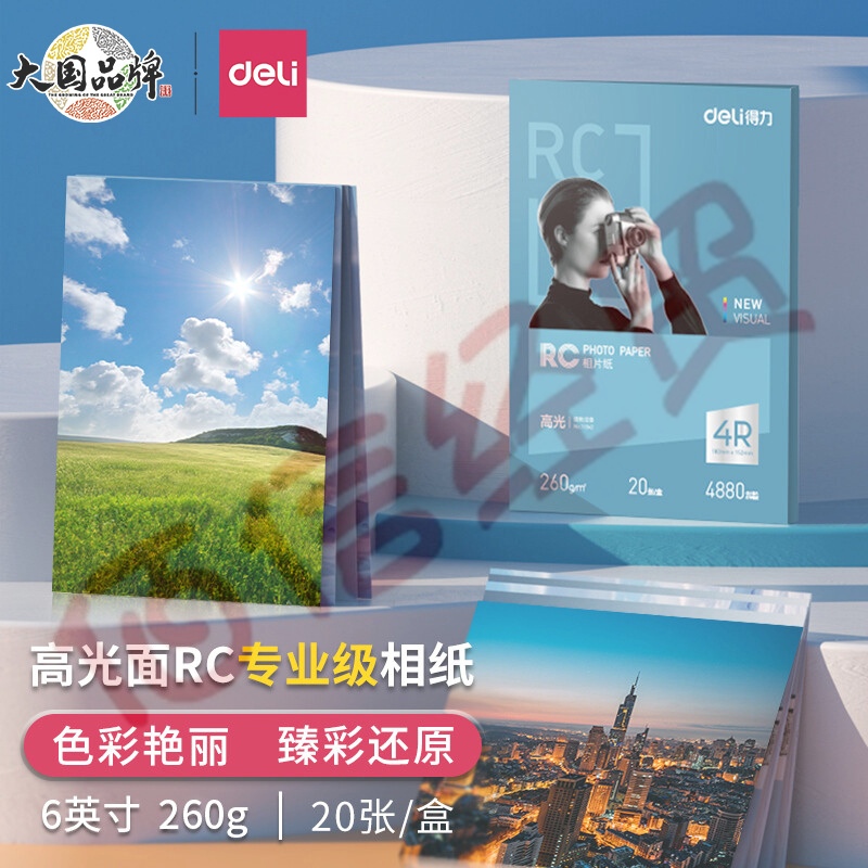 得力(deli)6寸 260g高光面RC專業(yè)相片紙 影樓專用照片打印紙 20張/盒 11842 自營