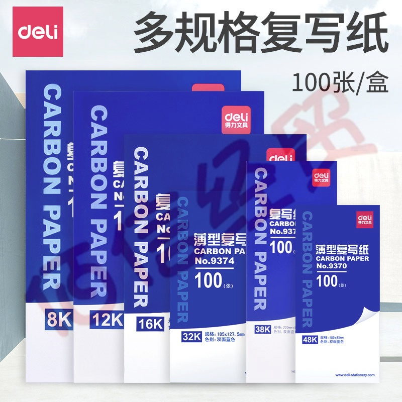 得力(deli) 復(fù)寫(xiě)紙 薄型雙面藍(lán)色印紙 財(cái)務(wù)用品 (9374)32K 127*185mm 自營(yíng)