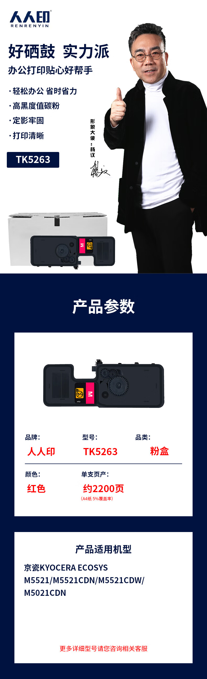 人人印TK-5253K紅色 適用京瓷Kyocera ECOSYS M5521CDW碳粉M5521CDN M5021CDN粉盒 TK5263大容量墨盒 含芯片 自營