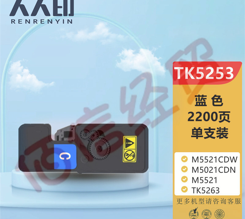 人人印適用京瓷TK5253粉盒M5521CDW硒鼓M5021CDN復印機墨粉TK5263墨盒M5521 TK5263大容量墨粉盒藍色 帶芯片 自營