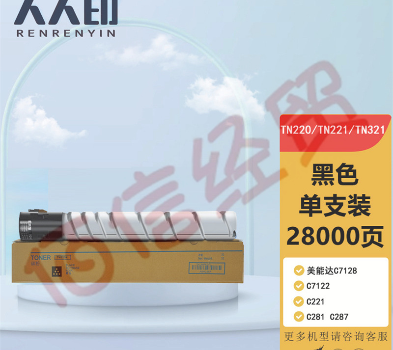 人人印 TN220粉盒黑色 適用柯尼卡美能達(dá)C7128 C7122 C221 C281 C287墨盒 震旦ADT223 ADC223 S 283 碳粉 自營