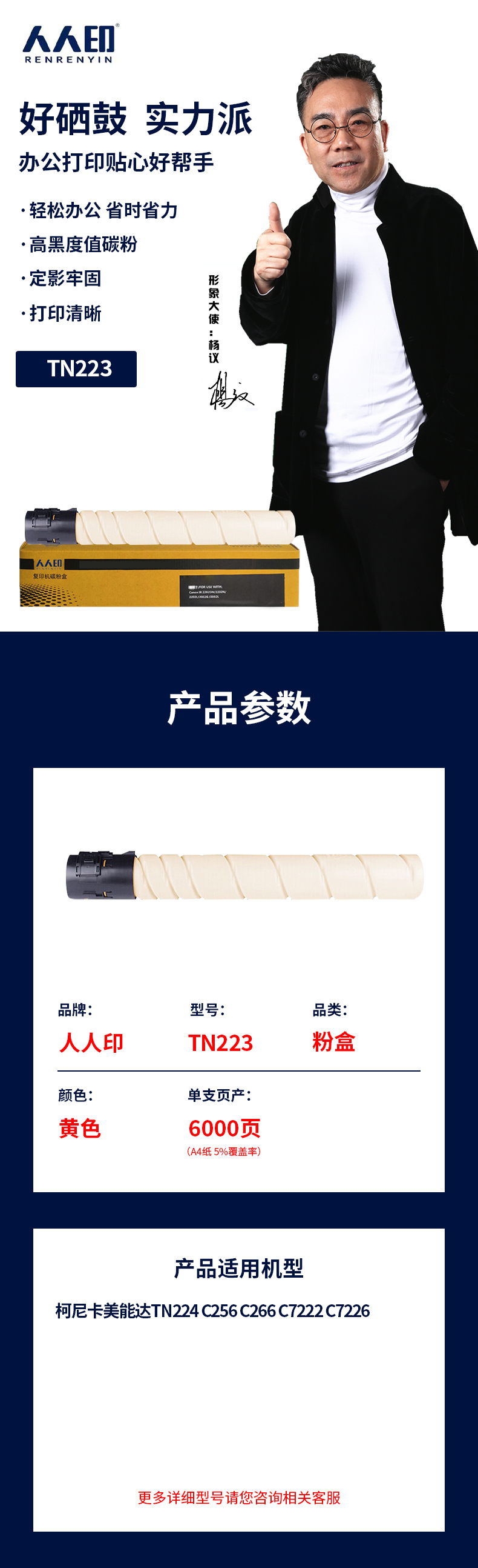 人人印 美能達(dá)TN223黃色墨粉盒 柯尼卡美能達(dá)TN224 C256 C266 C7222 C7226墨盒 柯美C226碳粉 (標(biāo)準(zhǔn)容量) 自營