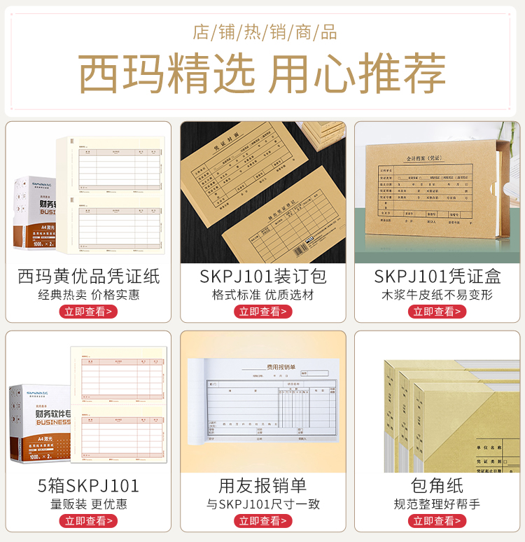 西瑪(SIMAA)西瑪黃 SKPJ101用友憑證紙A4金額記賬憑證打印紙 財務辦公T3/T6/U8專用/210*127mm 2000份/箱(整箱價) 自營