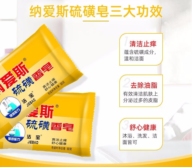 納愛斯香皂硫磺皂洗臉藥皂90g除螨蟲洗澡納愛斯肥皂10塊裝 自營