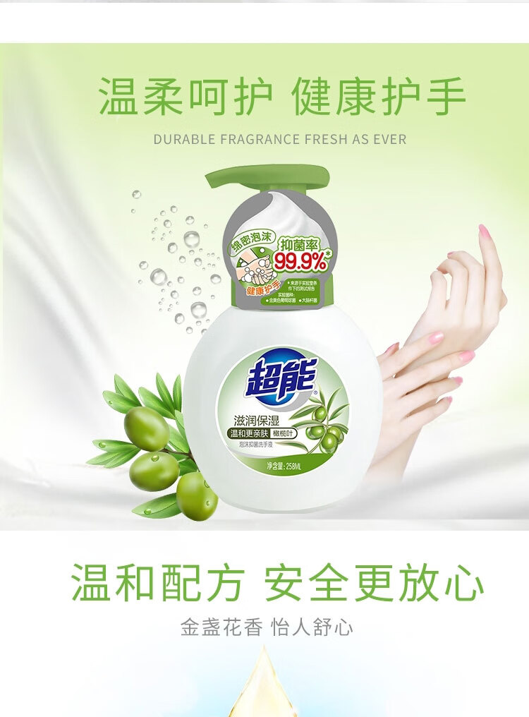 超能高端泡沫抑菌洗手液抑菌率99.9%守護(hù)健康護(hù)手滋潤保濕清新祛味溫和更親膚家庭實惠裝可票勞保福利 258ml超能泡沫抑菌洗手液(祛味清新) 1瓶 自營