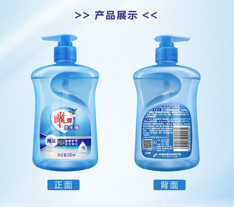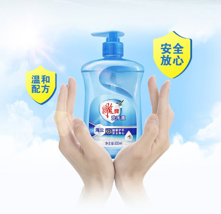 雕牌海鹽洗手液500ml清香家用便攜健康護(hù)手--單瓶?jī)r(jià)--每箱24瓶(整箱售) 自營(yíng)