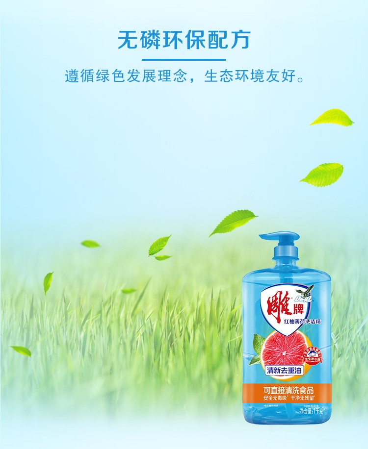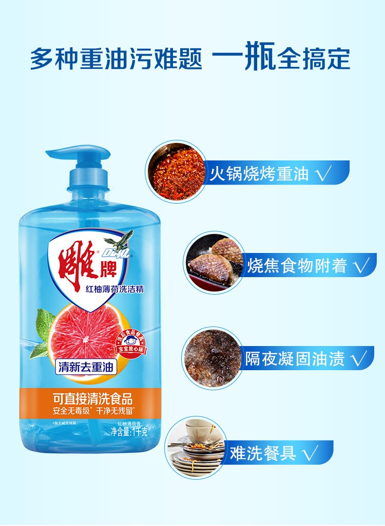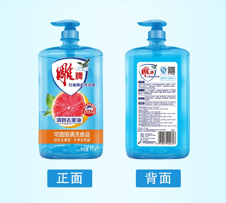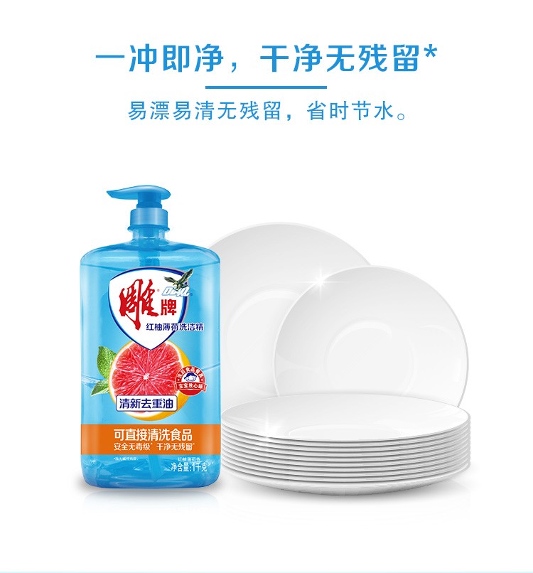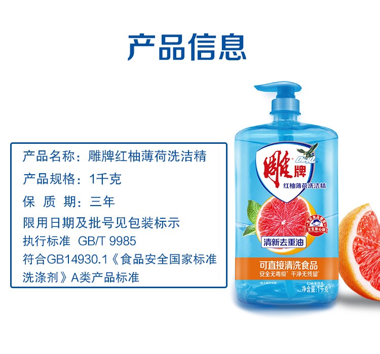 雕牌洗潔精1kg紅柚薄荷洗潔精安全無毒級(jí)不傷手/水蜜桃味 寶寶放心舔 1kg紅柚洗潔精1瓶每箱10瓶(整箱售) 自營(yíng)