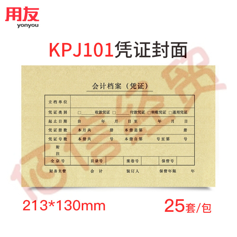 西瑪用友(UFIDA)SZ600136 KPJ101用友憑證紙封面封皮25套 213*130mm 會(huì)計(jì)記賬憑證封面 25套/包 (20包/箱)(單包價(jià)-整箱售-拍20組) 自營(yíng)