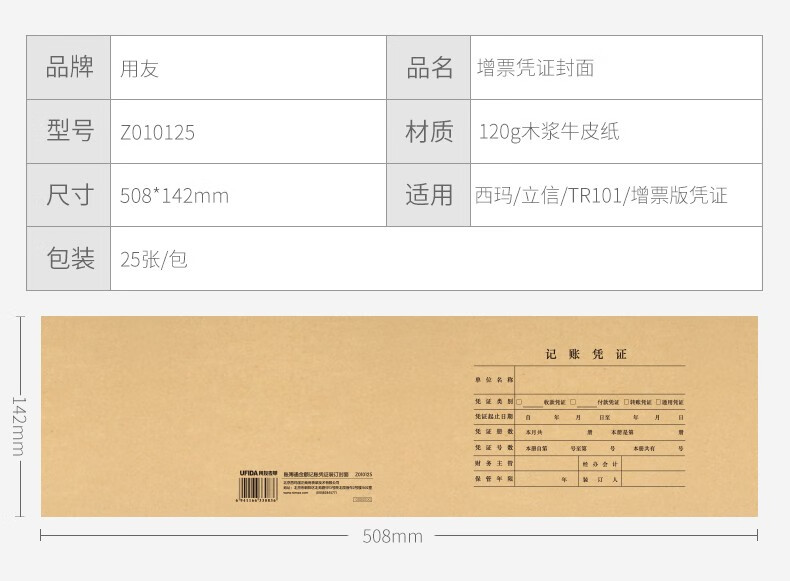 西瑪用友508*142mm賬簿通金額記賬憑證裝訂封面 發(fā)票版配套裝訂憑證封皮 Z010125--25張/包 20包/箱(單包價(jià)-整箱售-拍20組) 自營