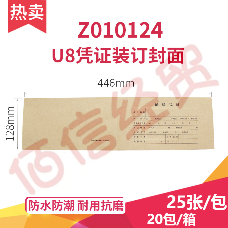 U8憑證裝訂封面Z010124(446mm*128mm) 25張/包 20包/箱 --整箱售--單包價 自營