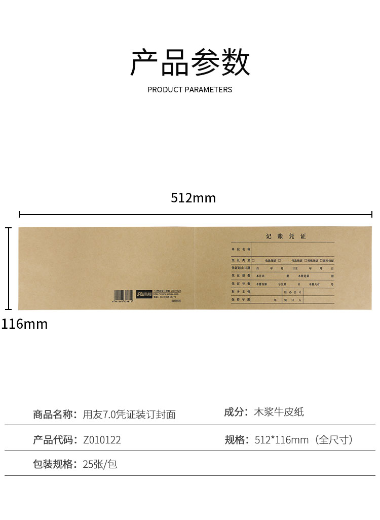西瑪用友7.0記賬憑證裝訂封面封皮牛皮紙512*116MM 6.0 7.1憑證型號適用封面Z010122--25套/包 20包/箱(單包價-整箱售-拍20組) 自營