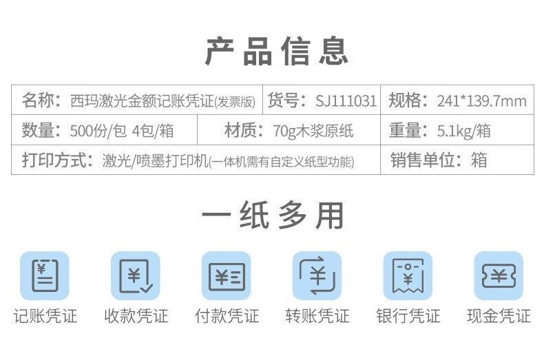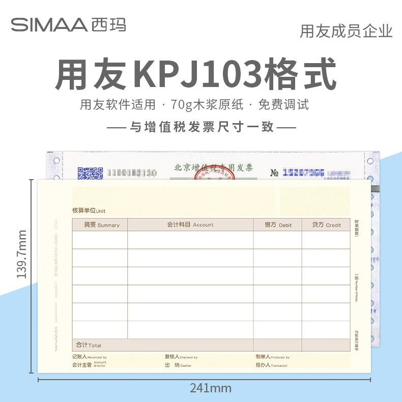 西瑪 發(fā)票版激光金額記賬憑證 SJ111031用友KPJ103同格式241-139.7mm 自營(yíng)