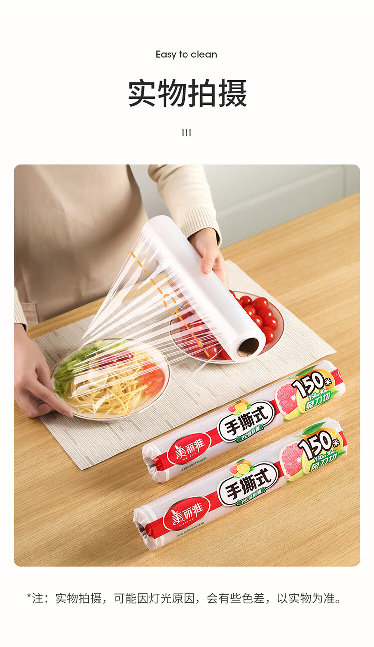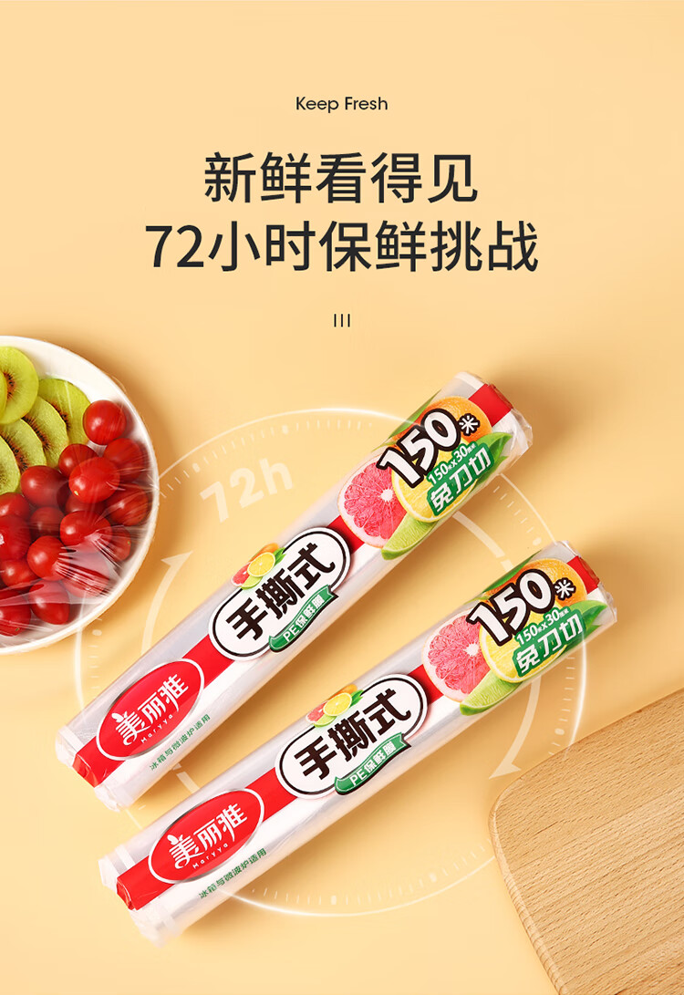 美麗雅 食品級保鮮膜150米*30cm 一次性斷點大號保鮮膜 免刀撕耐高溫 簡裝家用升級點斷式 可蒸可微波(20卷/箱)(5個起售) 自營
