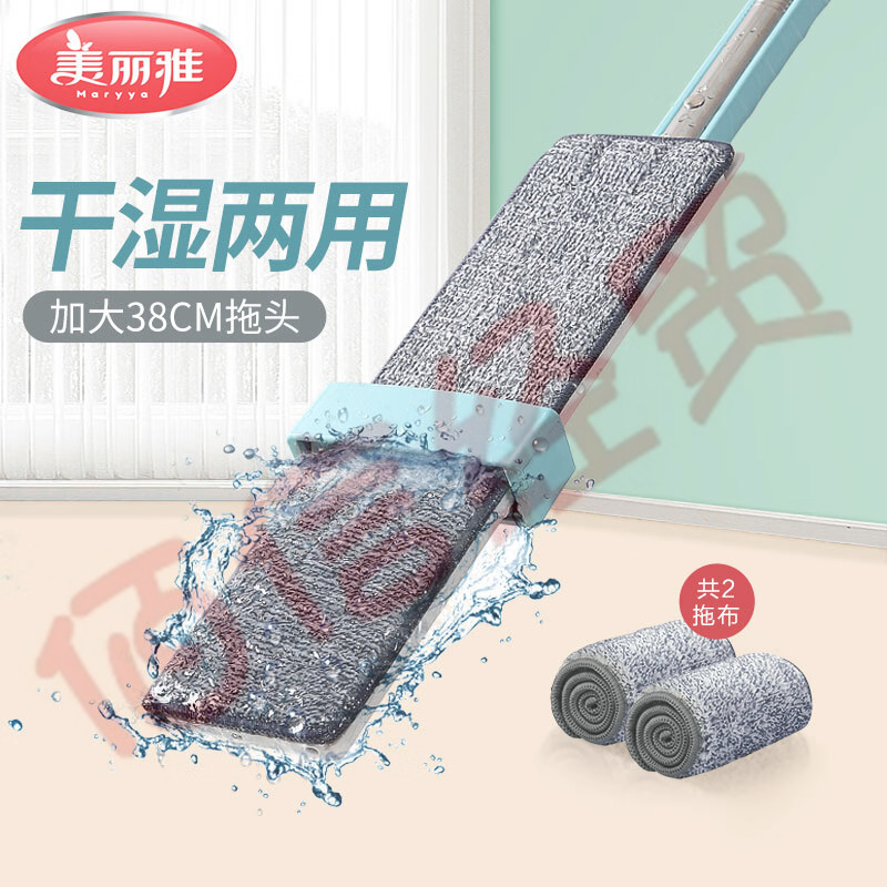 美麗雅 經(jīng)典平板拖把夾布地拖 干濕兩用木地板墩布 共2張拖把替換布
