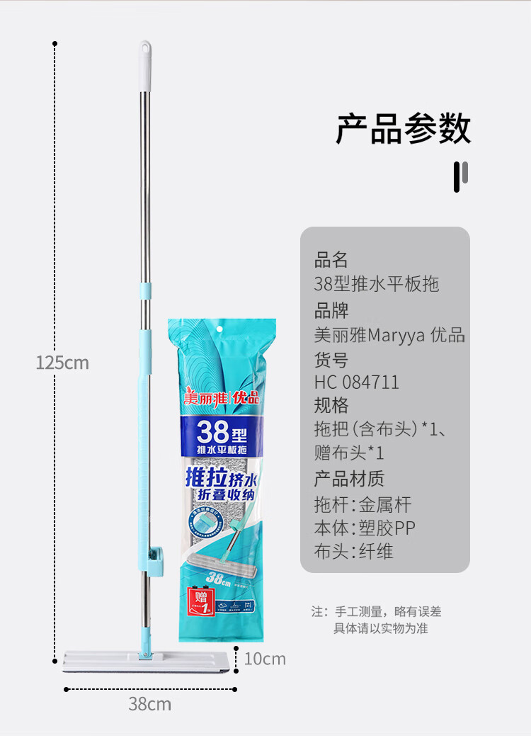 美麗雅 洗刷刷平板拖把備件 不銹鋼拖把桿 單拖把替換裝墩布拖把頭(10個(gè)/箱)