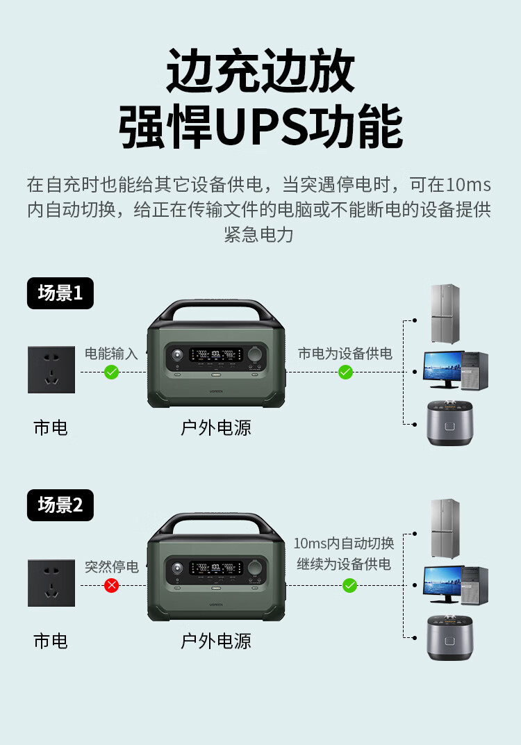 綠聯(lián) 星辰GS600戶外電源600W便攜快充移動電源 680Wh大容量大功率筆記本電腦充電寶220V露營家用應急備用儲能