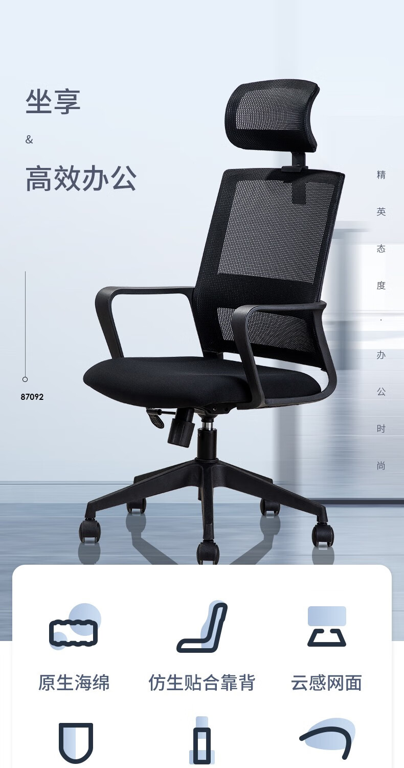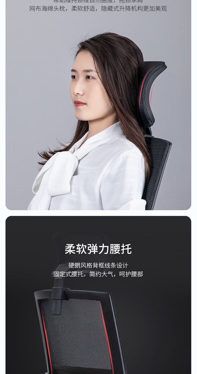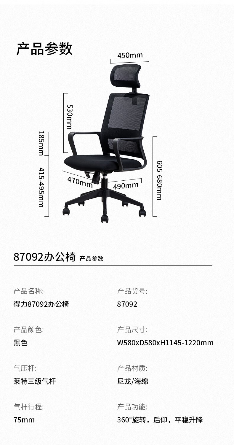 得力(deli) 簡約舒適辦公椅黑色 人體工學(xué)電腦椅 帶頭枕舒適辦公椅子升降可控帶頭枕 升級帶頭枕+逍遙仰傾底盤87092 自營